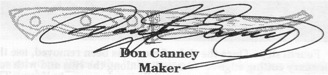 The blade is made from specially designed high carbon/semi-stainless alloy steel. The steel is then hardened and tempered to Don’s specifications. Each blade is signed and dated as well as marked with an “SS” that signifies Don Canney’s “Super Steel”.